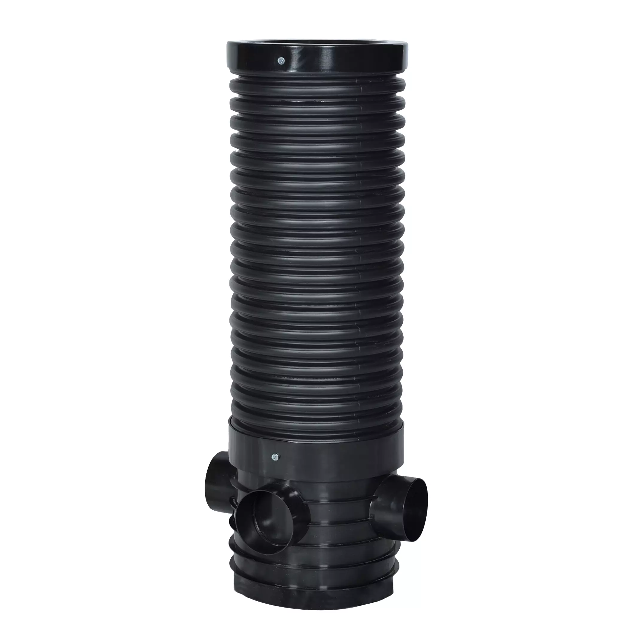 Produkten samlar dräneringsrör vid byggnadens hörn. Dräneringsinspektionsbrunnar möjliggör spolning av dräneringssystemet vid behov.Robust brunn för dränering av byggnader. Brunnen har en höjd på 1000 mm. Dräneringsbrunnen har 3 öppningsbara 110 mm anslutningar, varav en är öppnad.Produkten levereras med en 315 mm tät lock fäst med skruvar.- Höjd 50 cm- Bredd 50 cm- Djup 100 cm- Vikt 7,05 kg