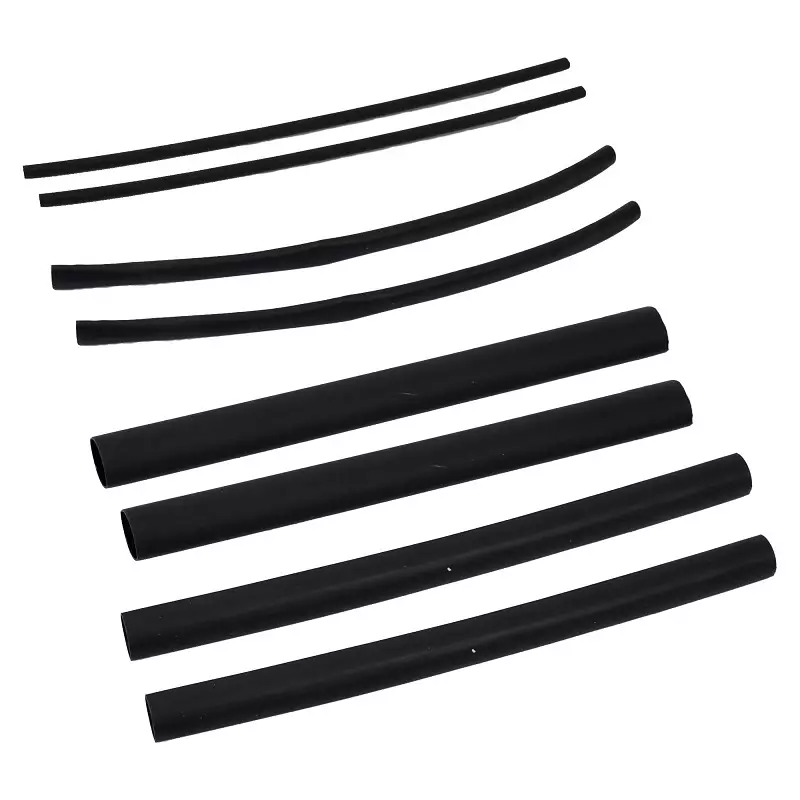 8-delars krympslangssats för isolering. Det yttre lagret krymper och det inre limmet smälter och bildar ett flexibelt och lufttätt skydd runt objektet. Krympslangen klarar både elektrisk och mekanisk belastning och är även vattentålig. Innehåller krympslangar med diametrar på 6,4 mm (2 st), 9,5 mm (2 st), 15,0 mm (2 st) och 19,1 mm (2 st). - längd: 30 cm