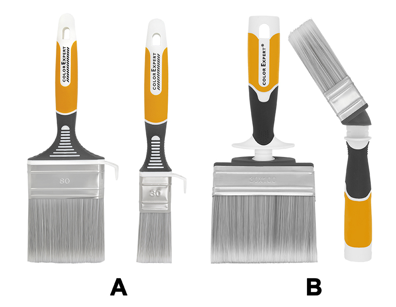 Ergonomisk pensel med trekomponentshandtag - borst av syntetisk blandfiber - bra färgupphämtning och jämn applicering på målytor - bäst lämpad för vattenbaserade färger och lacker - mycket fin finish Fasadpenslar, bredder 100 och 120 mm, med böjd handtag (bildmodell B). Användningsområde: Alla ytor, möbler Lämplig för: Vattenbaserade färger och lacker, kalkfärger Bredd 30 mm: - borstens längd 51 mm - tjocklek 15 mm Bredd 40 mm: - borstens längd 57 mm - tjocklek 15 mm Bredd 60 mm: - borstens längd 63 mm - tjocklek 18 mm Bredd 80 mm: - borstens längd 68 mm - tjocklek 19 mm Bredd 100 mm: - borstens längd 58 mm - tjocklek 30 mm Bredd 120 mm: - borstens längd 60 mm - tjocklek 30 mm