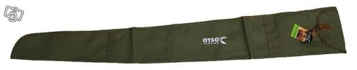 grön canvas ammunition väska - med läderspänne - mått: 122,5 x 25 cm