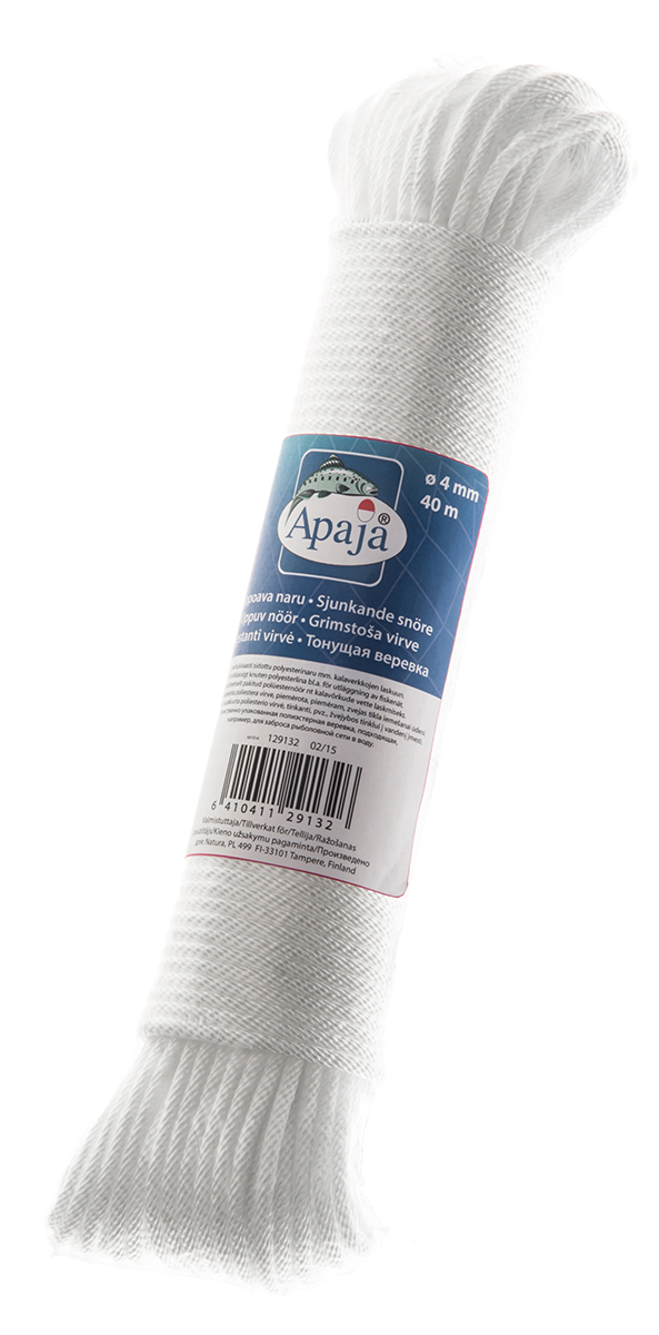 tjocklek 4mm - längd 40m - högkvalitativt bundet polyestergarn, exempelvis för sänken av fiskenät - färg vit