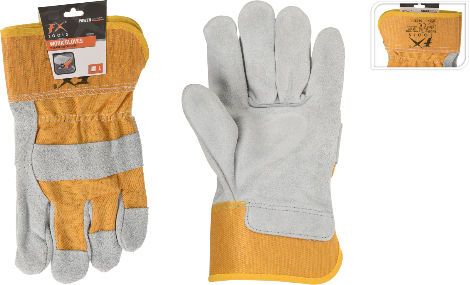 arbets handskar i nötkött läder 65%, tyg 35% - storlek 10
