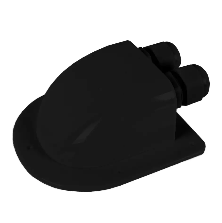Genomföring för två kablar, vattentät för kablar som ska ledas exempelvis upp på båtens däck. Passar för 4 och 6 mm². Max. kabeldiameter ca 8,5 mm. Mått: 108x100x45 mm Tekniska specifikationer:Hölje för yttäckande installation, skruvmontering (använd tätningslim) Höljet är tillverkat av UV-skyddad ABS Vattentät kabelgenomföring med gummitätningsring Passar för 4 och 6 mm². Max. kabeldiameter ca 8,5 mm Svart Mått: 108x100x45 mm