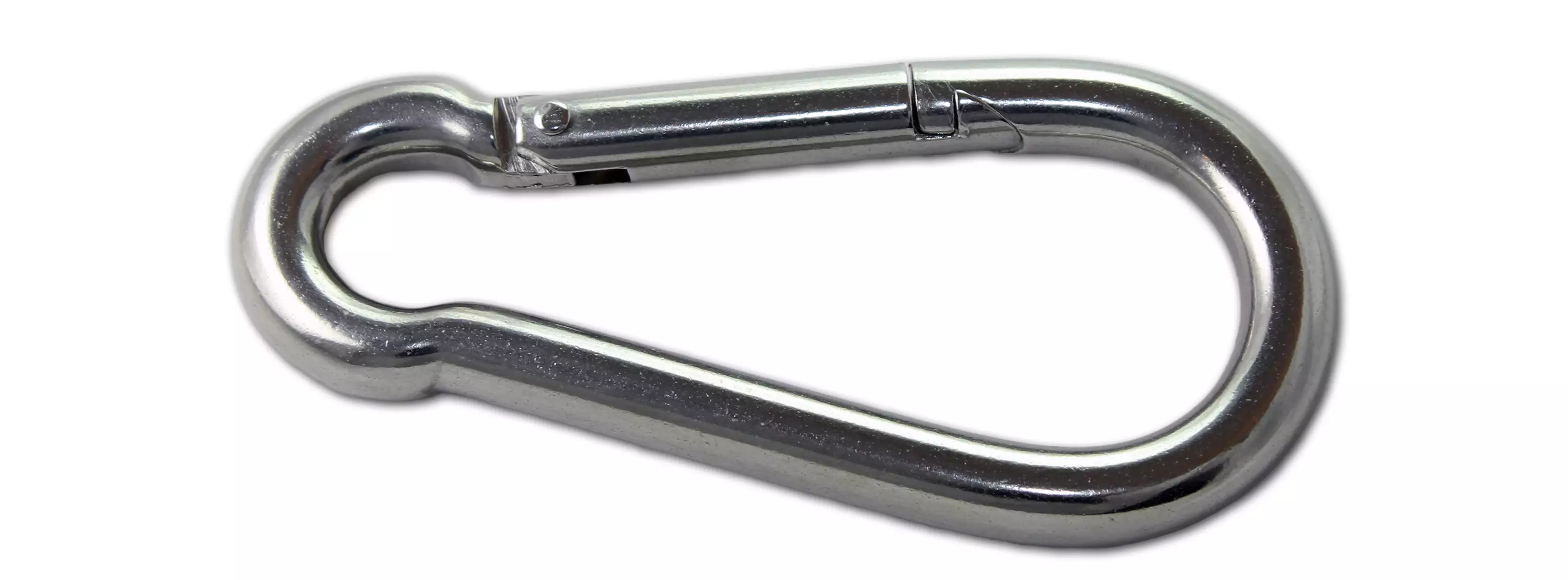 Karbinhake av rostfritt stål, saltvattensbeständig.