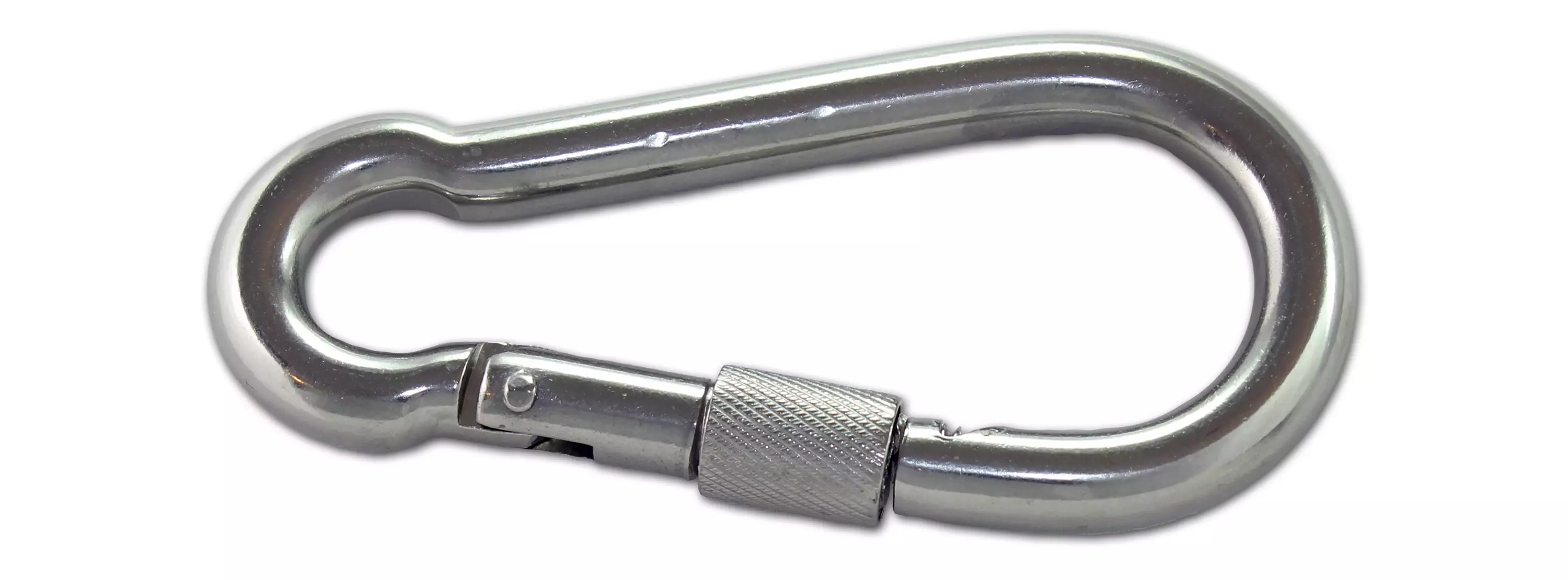 Karbinhake i rostfritt stål, låsbar och vattenresistent för havsvatten.