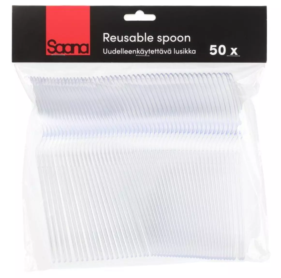 Saana matsked är ett hållbart och återanvändbart alternativ för både vardag och fest. Den klara designen passar många olika dukningar. Längd 18 cm. Tål maskindisk. Förpackningen innehåller 50 stycken. Förpackningsinformation: Bredd3,5 cm Djup2 cm Höjd18 cm Vikt0,26 kg Färgklar Materialpolystyren
