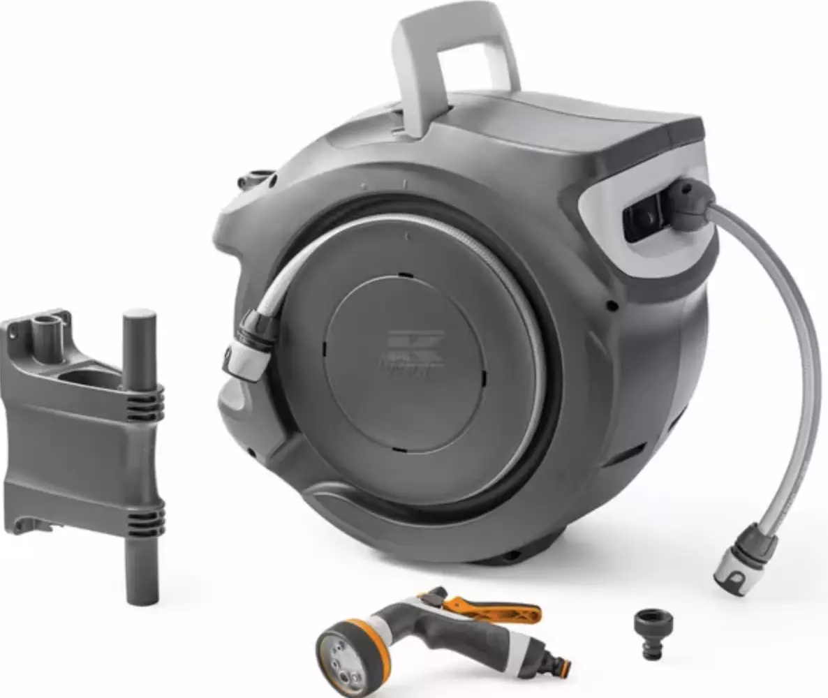 Denna väggmonterade automatiska slang-uppdragare erbjuder en smidig och praktisk lösning för att rulla in slangen. När den är monterad på väggen har den ett justerbart fäste som låter dig låsa slangen i den mest bekväma positionen, vilket håller den nära vattenuttaget. Rullen säkerställer en jämn, långsam och bekväm indragning av slangen. - Acquastop ½" soft touch slangkoppling- Multifunktionsspruta med 8 sprutlägen- Krångelianskopplingsset som innehåller: 1,5 m förstärkt ½" slang, ½" SOFT TOUCH slangkoppling och kranadapter- Ramens material: Plast- Vikt: 9 kg- Automatisk uppdragning: Ja- Styrenhet: Ja- Slangens längd: 20 m- Slangens inre diameter: 12,5 mm- Slangens inre diameter: 1/2 tum- Max arbetstryck: 10 bar