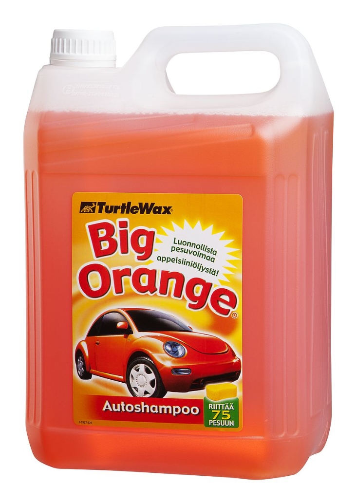 Naturlig tvättkraft av apelsinolja! Big Orange Autoshampoo är en skummande rengöringsmedel med apelsinoljans naturliga tvättkraft. En unik rengöringsmedel som inte skadar bilens vaxskikt. Vattnet pärlar bort från den rena lackytan och glansförbättrande ämnen avslutar behandlingen vackert. Passar alla lackytor. Ger en lätt glans. Förpackningsstorlek 5 L.