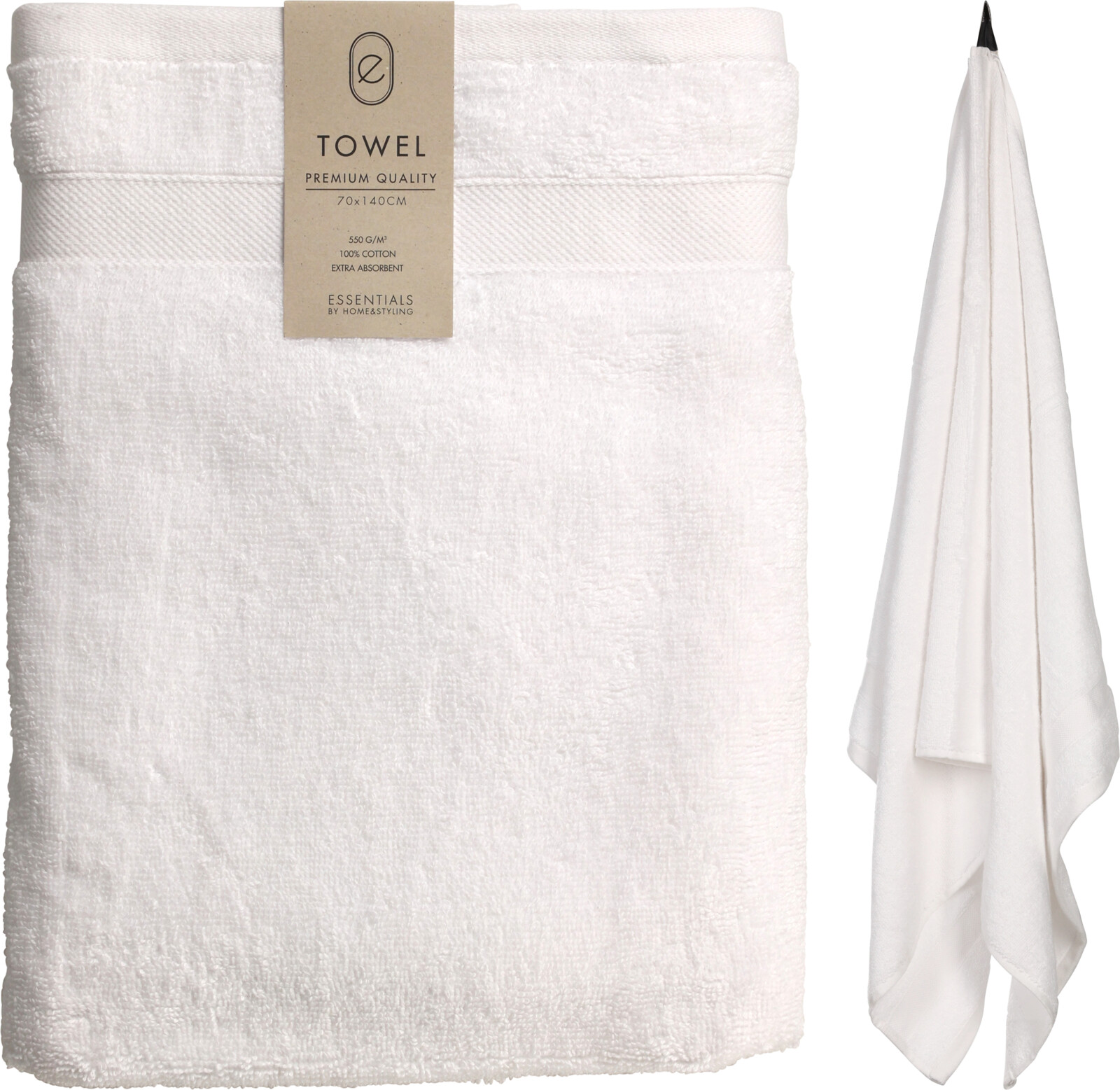 Högkvalitativ och absorberande badhandduk - 550g/m² - material 100% bomull - storlek 70x140 cm - färg: vit