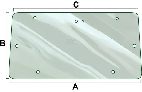 Övre bakfönster för traktorer. - längd A: 1 220 mm - längd B: 590 mm - längd C: 1 120 mm - tjocklek: 6 mm - motsvarar del: Massey Ferguson 3477716M1 Passar följande modeller av Massey Ferguson: - 342 - 350 - 352 - 355 - 360 - 362 - 362N - 365 - 372N - 375 - 382N - 390 - 390T - 396 - 398 - 399