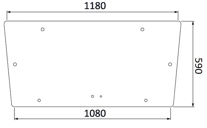 Övre bakfönster för traktorer. - mått: se bild - tjocklek: 5 mm - motsvarar del: Massey Ferguson 3477716M1 Passar följande modeller av Massey Ferguson: - 350 - 352 - 355 - 360 - 362 - 365 - 375 - 390 - 398 - 399