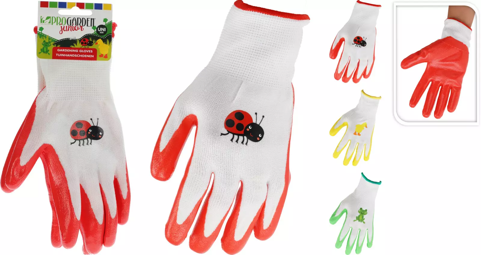 - barnens trädgårdshandskar i en storlek - förpackningen innehåller 1 par - finns i 3 olika färger/teman (som på bilden), du får ett slumpmässigt val beroende på lagersituation (sortimentsprodukt)