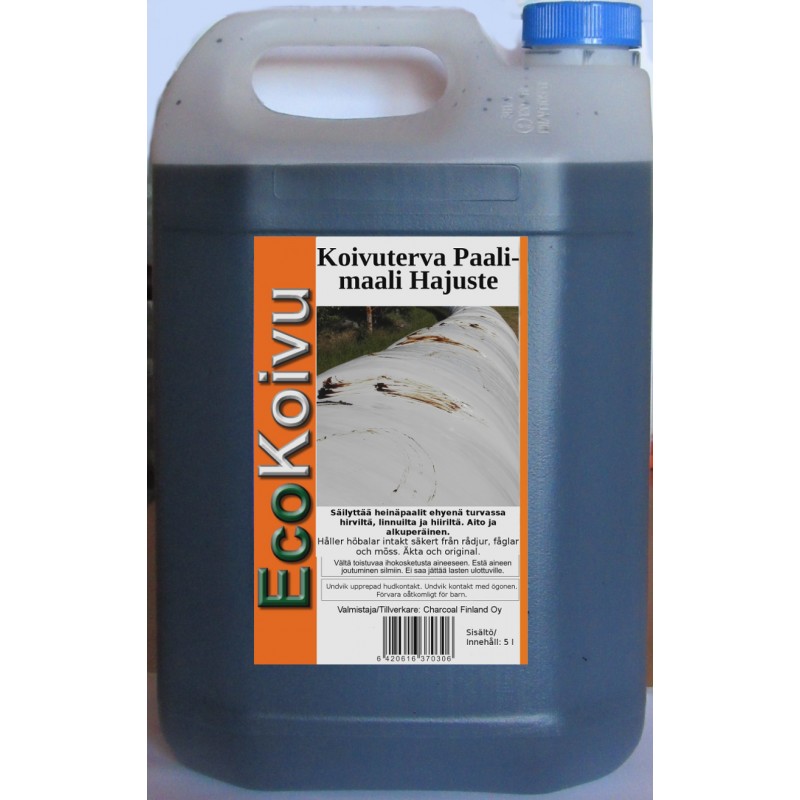 Björktjära för halmbalar - skyddar halmbalar från att bli förstörda av älgar, fåglar och möss - äkta och originalprodukt - tillverkad av ren finsk björk - förpackningsstorlek 5 liter