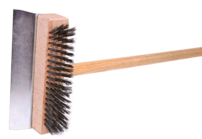 bred sopborste för rengöring av spisar - med trähandtag - med bred metallborste