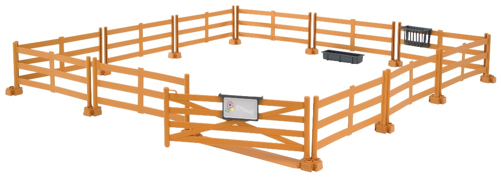 Bruder Profi-seriens hägn med port, höhäck, vattenskål och namnskylt. - skala: 1:16