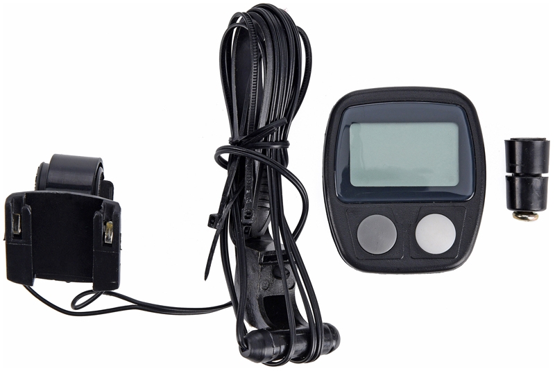 Vattentät cykelhastighets-/äkilometer, med 13 funktioner: - hastighet - körtid - automatisk start/stopp - hjulomkrets - 24 timmar - genomsnittlig hastighet - resans sträcka - manuell start/stopp - automatisk avstängning - LCD-skanning - högsta hastighet - total sträcka - km/mile