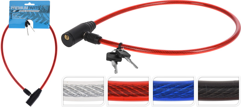 prisvärt cykellås med vajer - inkluderar två nycklar - längd 65 cm - finns i olika färger (som på bilden), vid beställning får du en slumpmässig färg (sortimentsvara)