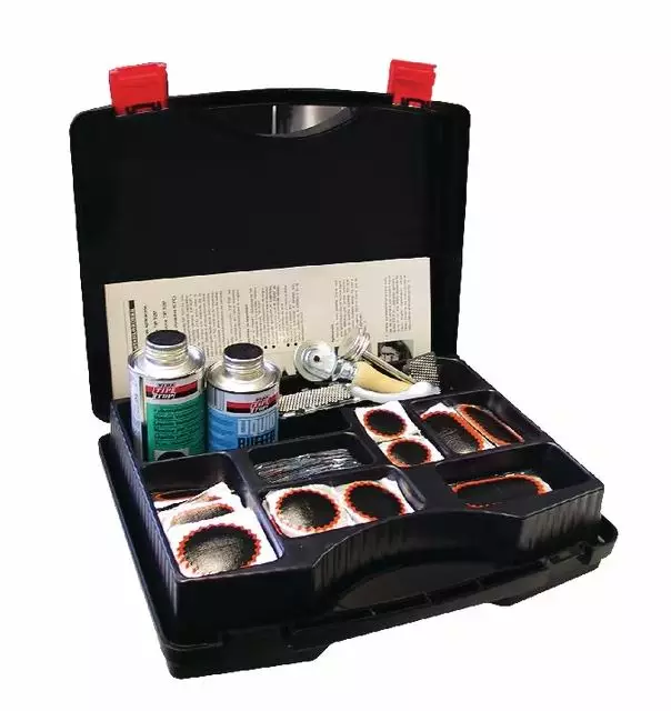Däckreparationssats verkstad TT42 Innehåller: • Innehåll: 100x innerdäckslagningsplåster 1,40x innerdäckslagningsplåster 2,20x innerdäckslagningsplåster 7,30x innerdäckslagningsplåster F2, 1x SVS vulkaniseringsvätska 175 gram (inkl. borste), 2x fil, 1x rulle, 1x fil.