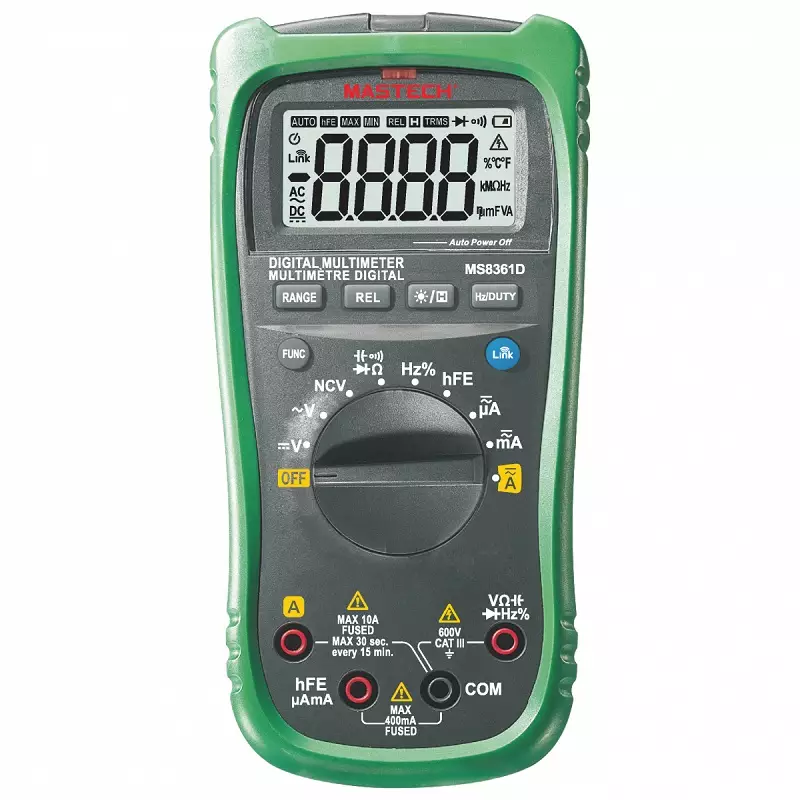 Mastech MS8361D multimeter - Automatisk och manuell områdeval - Automatisk strömbrytare - Verkligt RMS på växelspänning och växelström - Kontinuitetsboj