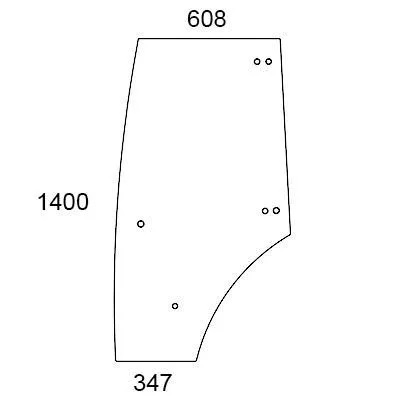 Böjd ruta för vänster dörr på traktorn. - mått: se bild - tjocklek: 6 mm - motsvarande del: Fendt 210812030040 Passar följande Fendt Vario-modeller: - 206 - 207 - 208 - 209 - 210 - 211