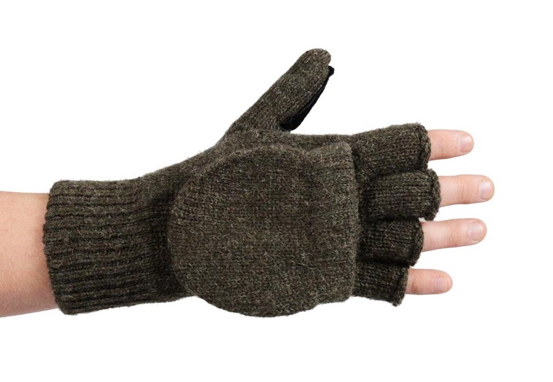 Dovrefjell handskar förvandlas snabbt till ett varmt ullhandske när fingerkuverten vänds upp över fingrarna som skydd. De är förstärkta på insidan med svart mocka och det elastiska stöd vid handleden håller dem på plats.
