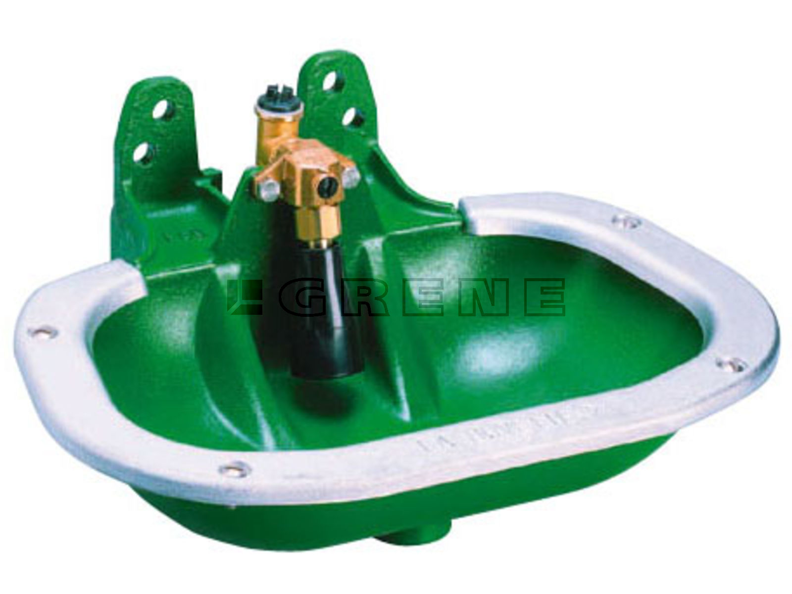 Stabil dubbelvalsjärn dricksskål med polybeläggning och avtagbar stänkskydd. I botten av dricksskålen finns en förmonterad hållbar och justerbar rörventil samt en rengöringspropp. - vattenanslutning: 1/2" RG