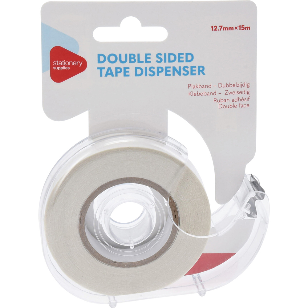 - vit dubbelhäftande tejp, 12,7 mm bred - 15 meter lång på rulle - levereras med hållare och kniv