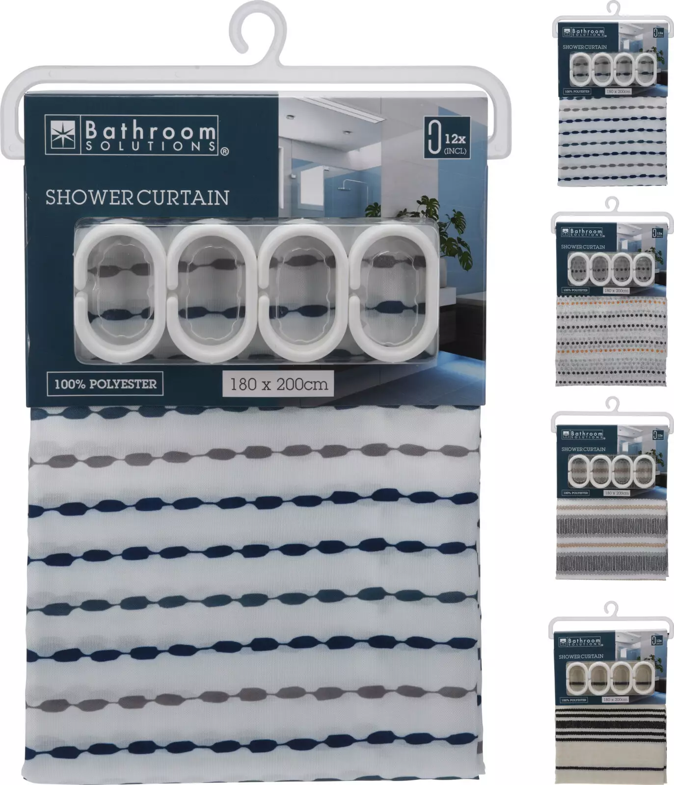 - prisvärt duschdraperi - mått: 180x200 cm - inkluderar fästringar - finns i 4 olika mönster (som på bilden), och du får en slumpmässig variant vid beställning (sortimentsartikel)