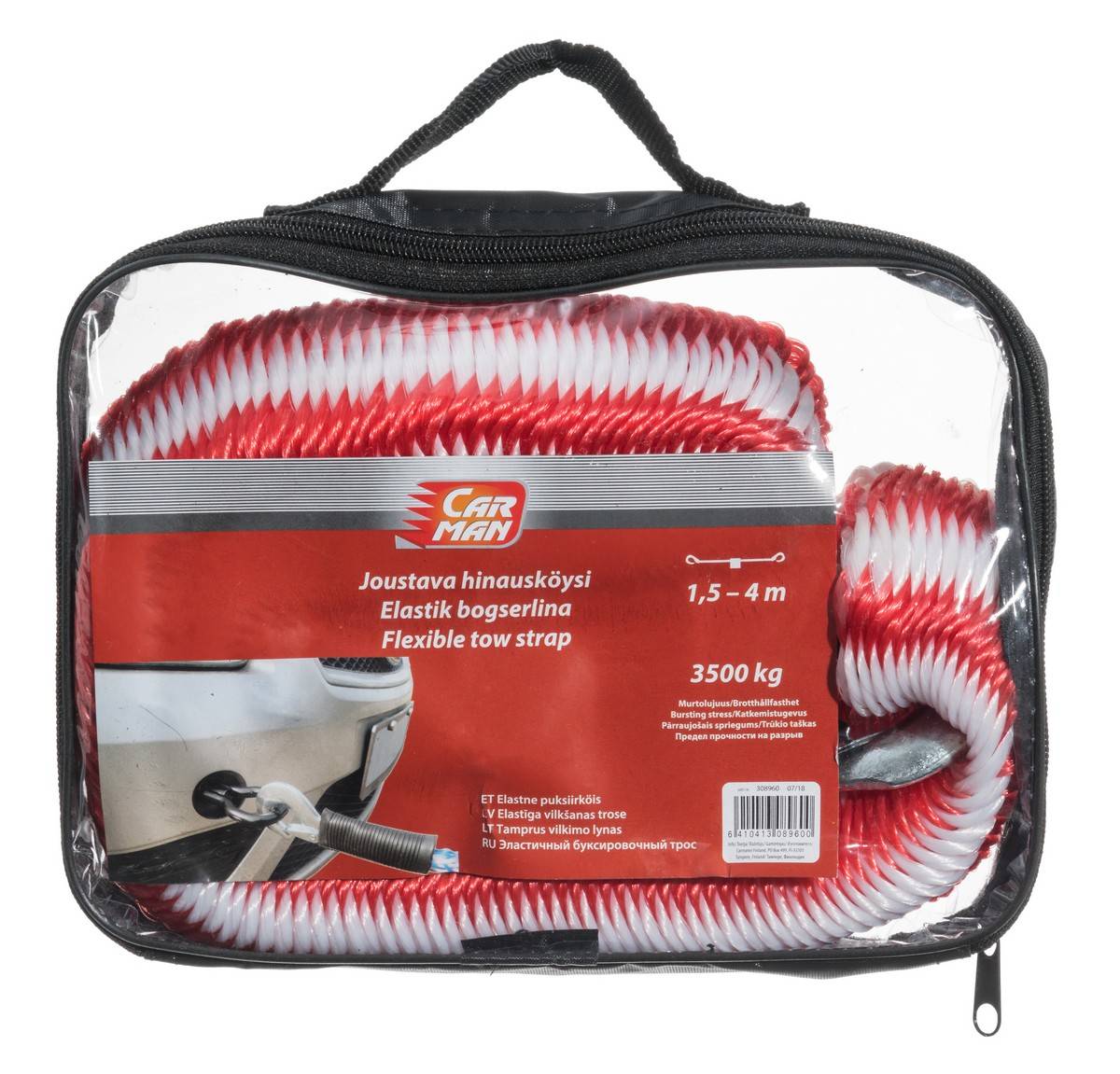 Elastiskt dragrep med förvaringsväska - längd 1,5-4 meter - brustålighet 3500 kg