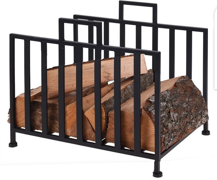 Elegant svart vedställ - ram av lackerat stål, tjocklek 10 mm - höjd 35 cm - bas 40x31 cm