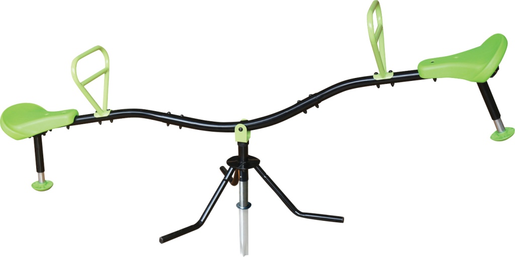 Med EXIT Spinner behöver du inte nöja dig med enbart upp-och-ned rörelser, eftersom gungan snurrar 360°. Dessutom finns det extra fjädrar under sätena! Gungans ram är mycket stark och tillverkad av 1,8 mm tjock galvaniserad och pulverlackad stålrör med en diameter på 42 mm. Sätena är gjorda av slitstark, högkvalitativ plast. Gungans handtag är av stål. Gungan har ett stabilt treben och ett användarvänligt förankringssystem, som gör att gungan står stadigt på plats men ändå är lätt att flytta vid behov.