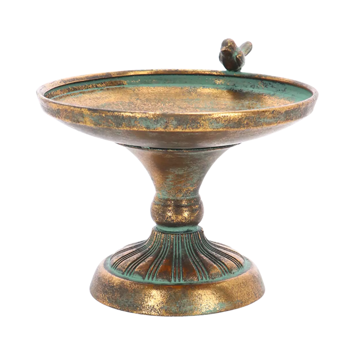 - metallisk fågelbad med stativ av gjutjärn- vacker vintage-yta- vikt 0,542 kg- mått: 23,2 x 23,2 x höjd 20,5 cm