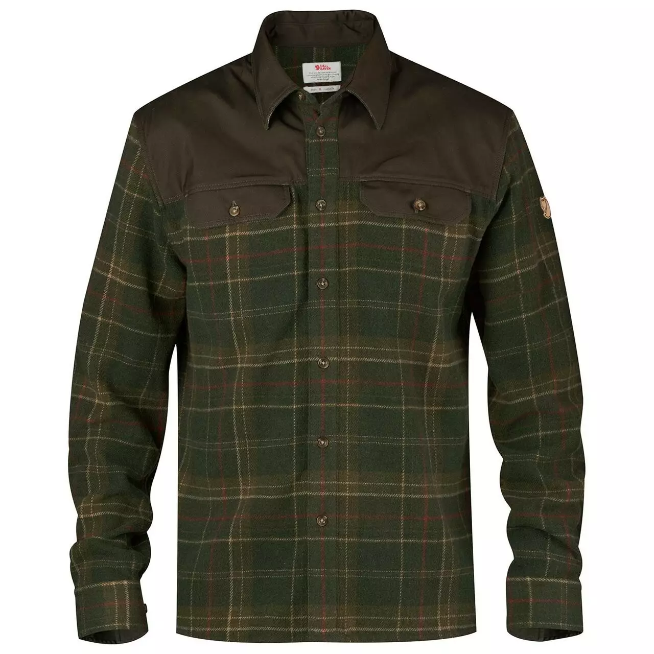 Hållbar och varm skogsarbetartröja i tjock flanelltyg, ullblandning och G-1000-förstärkningar vid axlar och ficköppningar. Materialet kombinerar ullens isolerande egenskaper med polyesterns hållbarhet, vilket gör detta till ett bekvämt vinterplagg som håller värmen även i fuktiga förhållanden. Rummig passform med plisseringar vid axlarna för ökad rörlighet. Knäppning fram, två bröstfickor med knappar. Kan anpassas med Greenland Wax, Fukttransportande, Isolerar när den är fuktig, Isolerande, Långvarig Material: 45% akryl, 25% polyester, 25% ull, 5% andra fibrerFörstärkning: G-1000® Silent: 65 % polyester (återvunnen), 35 % bomull (ekobomull)