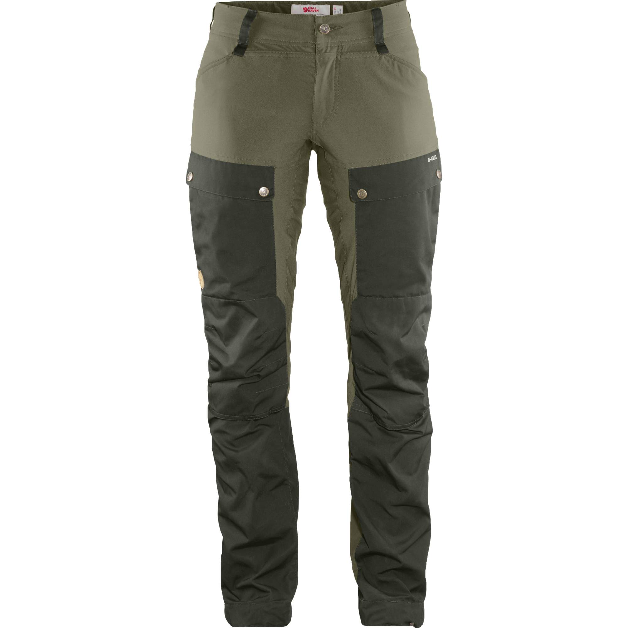Kvinnors tekniska vandringsbyxor för långa dagar i fjällen och bergskedjor. Tekniskt avancerade vandringsbyxor för kvinnor med förbättrad Curved Fit-passform och noggrant genomtänkta detaljer. Curved Fit-mått har mer bredd över baken och låren, medan midjan är något smalare och högre än i andra modeller. Den hållbarare konstruktionen är utvecklad för vandringar, där rörelsefrihet är minst lika viktig som hållbarhet. Därför är till exempel bakdelen och knäna formar och sömmen bak är särskilt stark. Dessutom har byxorna G-1000 Eco-material på bakdelen, insidan av bensluten, knäna och insidan av byxbenens nederdelar. Bensluten är också förstärkta med dubbelt tyg för att stå emot nötning från vandringsskor. Innersömmarna har tagits bort och ersatts av en enhetlig del, vilket minskar slitage. Överskottsvärme kan avlägsnas genom ventilationsöppningar med dragkedja som sträcker sig från knäet till höfterna samt ventileringsöppningar på sidan av benen. Framknäppningen har också förlängts så att den kan ventilera. Två benfickor, varav en har dragkedja och den andra har lock med en nätficka för småsaker. Handfickorna är högt placerade, så innehållet stannar på plats även när man sitter. Snörknytning och spänne vid bensluten och krok för att fästa i skorna eller monoskidor. Bensluten kan lätt tas bort om så önskas. - Avancerade vandringsbyxor med utmärkt Curved Fit-passform- Belönad byxmodell i en ännu bättre version- Tillverkade av elastiskt stretchmaterial samt ekologiskt G-1000 Eco-material- Sidoventilationer för enkel temperaturreglering- Förlängd framknäppning som också fungerar som ventilation- Två handfickor och två benfickor, varav en med dragkedja- Möjlighet till knäskydd- Benslut som enkelt kan tas bort om så önskas- Skokrok som håller byxbenen på plats Tekniska specifikationer:- Vikt cirka 500 g- Smal passform- Material 1: G-1000 Eco (65 % återvunnen polyester, 35 % ekologisk bomull)- Material 2: 63 % polyamid, 26 % polyester, 11 % elastan- Hög midja- Normal längd på byxbenen