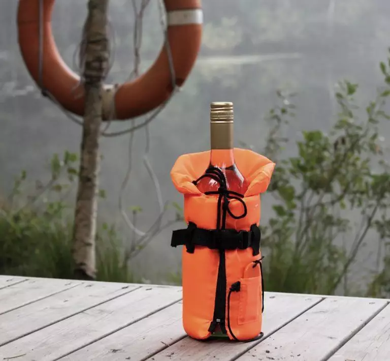 Hej, en rolig present till alla vinälskare. Vinflaskan kan placeras i flytvästen så att den inte går förlorad! - mått: 15x2,5x30 cm - vikt 0,07 kg