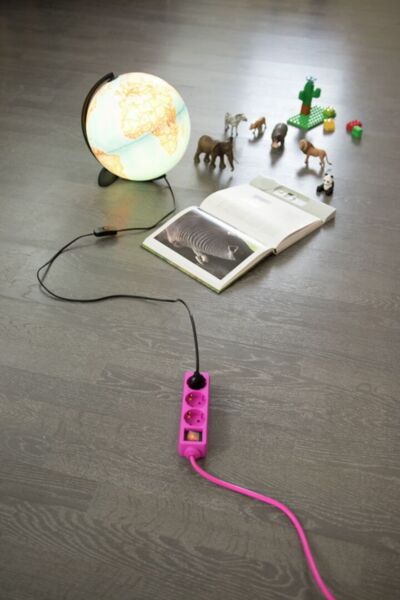 Airam 3-delad förlängningssladd, rosa - Endast för inomhusbruk - Skyddsklass IP20 - H05VV-F 3 x 1,5 mm2 - On/off-knapp och indikatorlampa - Max last 3680W