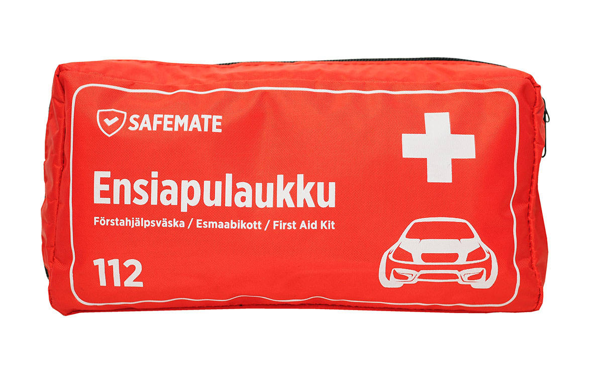 Detta DIN-godkända 41-delars första hjälpen kit är utformat för bilförare och innehåller alla nödvändiga första hjälpen-artiklar för resan. Alla tillbehör är förpackade i en praktisk väska. SafeMate första hjälpen väska är bra att ha i bilen, i stugan, hemma, på arbetsplatsen och på resan. Den kompakta storleken gör att väskan får plats i bilens handskfack. Väskan är röd, vilket gör den lätt att känna igen. Mått: 250x130x65mm Vikt: 0,370kg Innehåll: 1 st Självklistrande tejp 25mmx5m 4 st Plåster 100x60mm 2 st Plåster 120x20mm 4 st Plåster 25x72mm 2 st Plåster 45x76mm 2 st Plåster 19x72mm 1 st Steril sårkompress 60x80mm /4m 2 st Steril sårkompress 80x100mm /4m 1 st Steril sårkompress 100x120mm /4m 1 st Steril sårduk 60x80cm 3 st Sterila sårförband 10x10cm 4 st Engångshandskar 2 st Elastisk bandage 60mmx4m 3 st Elastisk bandage 80mmx4m 1 st Värmefilt 210x160cm silver/guld 1 st Triangelbind 136x96x96cm 2 st Engångs ansiktsmask 17.5x9.5cm 1 st Sax 2 st Rengöringsduk 20x10cm 1 st Förvaringsförpackning 1 st Bruksanvisning