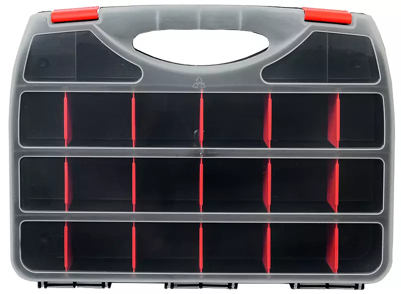 - mått L364 x B268 x H66 mm - plastorganisator som håller små saker i ordning - max. 18 + 1 fack - justerbara avskiljare, 15 stycken löstagbara fack - genomskinligt lock och bärhandtag - 1 års garanti