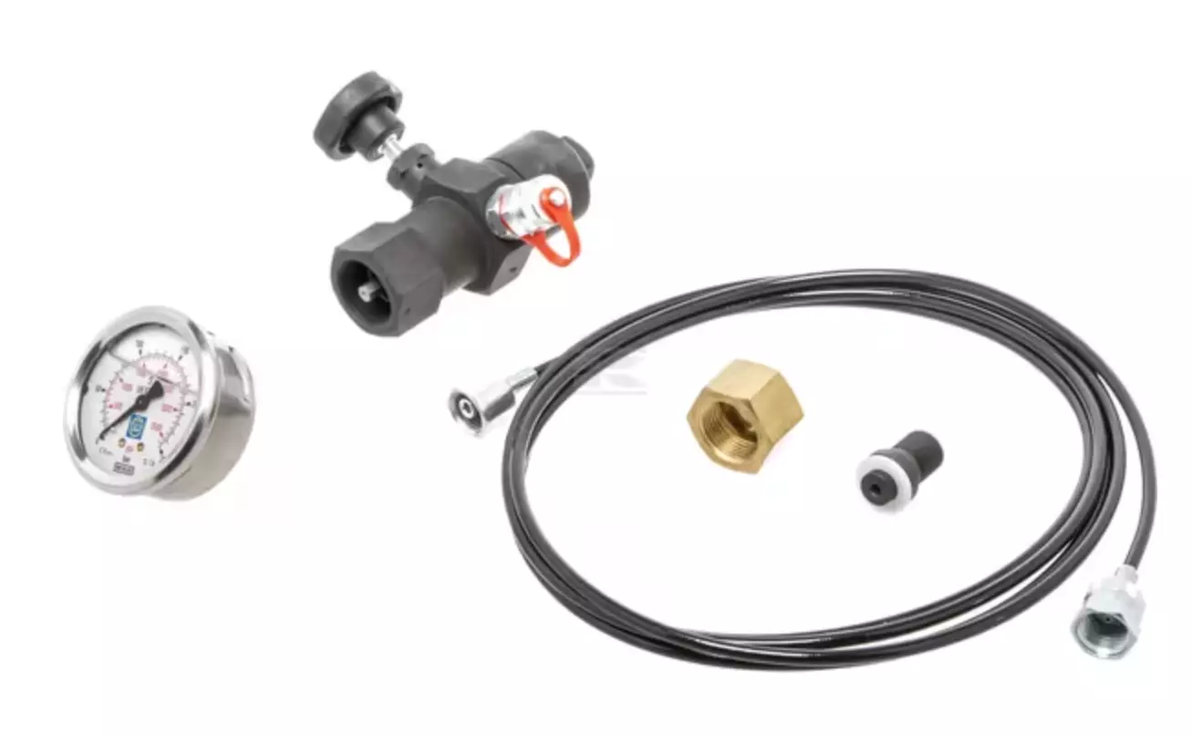 - Kontroll av förfyllnadstryck för hydrauliackumulatorer, minskning eller ökning - Fyllsystemet är kopplat till gasflaskans trycksänkning - Trycket i gasflaskan måste alltid vara högre än påfyllnadstrycket för ackumulatorn - Fyll endast med kväve, aldrig med syre eller tryckluft - För ackumulatorer med 5/8" UNF-koppling läggs adaptern 20213000223 till. - LAV9DP100: Ackumulator M28x1,5 - Kväveflaska W24.32 x 1 1/4". - Maximal arbetstryck: 360 bar - Märke: SAIP Inkluderar följande: - Fyllsystem - Fyllslang - Tryckmätare - Gasflaskadapter (L24, 32 x 1-1/4") - Plastväska
