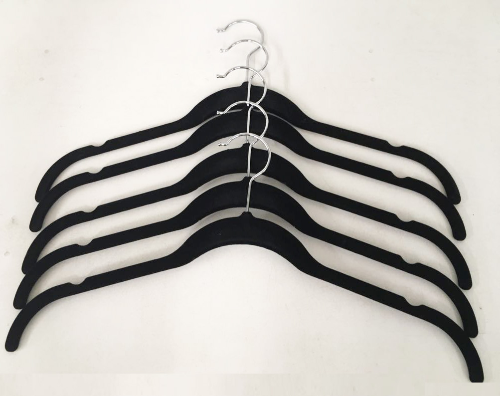 högkvalitativa galgar med sammetsytor - kläderna sitter bra på galgen eftersom ytan inte glider - 5 st/förpackning