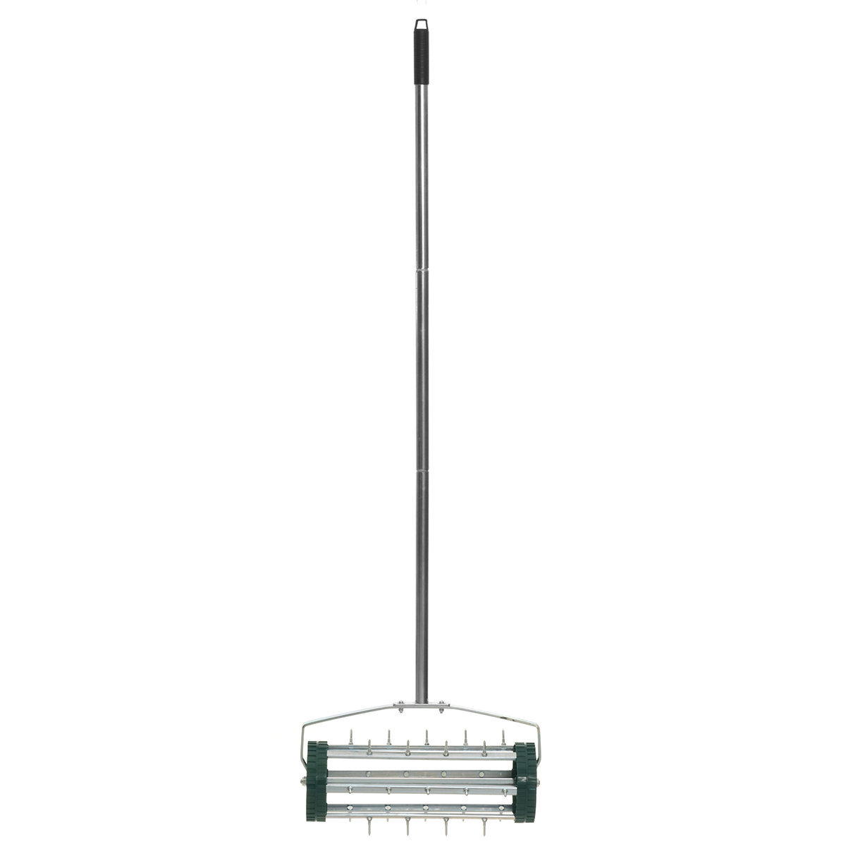 Lättanvänd gräsmatta luftare som skjuts. Utrustad med 27 spikar. Handtagets längd är 115 cm. Används på komprimerad och mossig mark på gräsytor. Luftning hjälper rötterna att få vatten... Läs mer