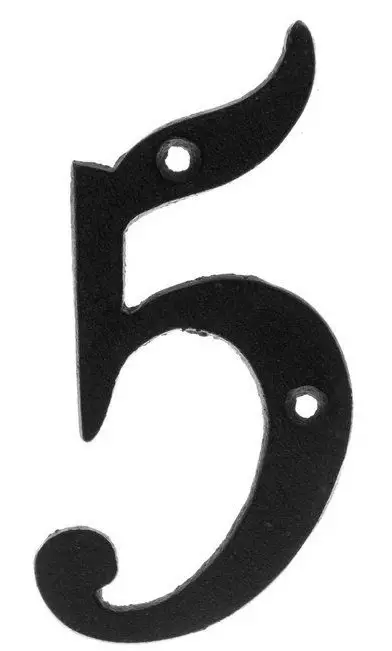 Svart gjutjärnsnummer med två fästhål. Passar till exempel som husnummer. Höjd 11 cm. Bredd6,5 cm Djup0,5 cm Höjd11 cm Vikt0,07 kg Färgsvart Materialgjutjärn