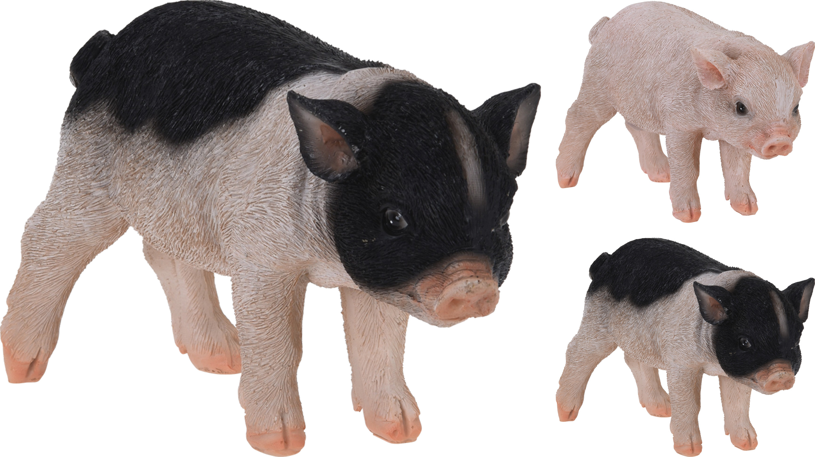 - små griskulpturer för trädgården - material: väderbeständig polyresin - storlek: längd 19 cm, höjd 12 cm, bredd 7,5 cm - assorterad produkt: vid beställning får du antingen en enfärgad eller fläckig gris på måfå - vikt 370 g