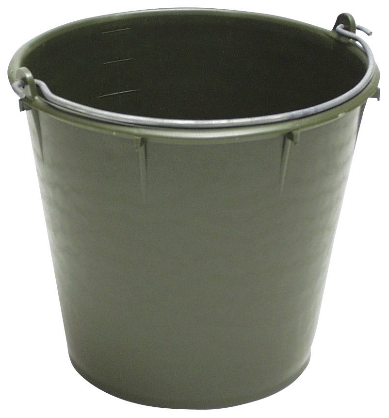 stabil grön plastkälla för stall eller andra hållbarhetskrävande ändamål - slitstark metallhandtag - volym 7 liter - höjd 230 mm - diameter 230 mm