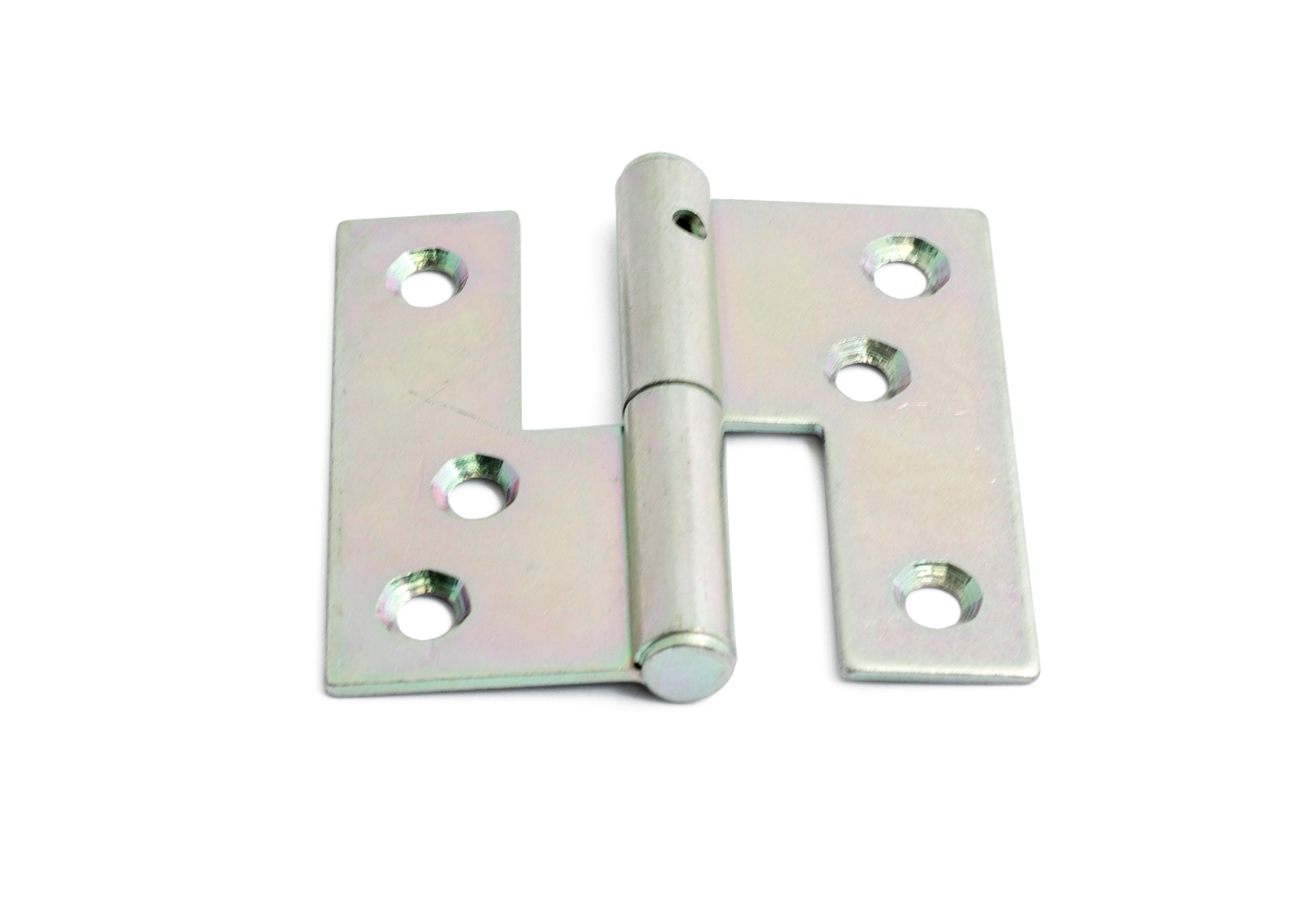 Hängsel av stål, med en tapp av stål. Tappens diameter är 6,5 mm. Skruvar ingår.