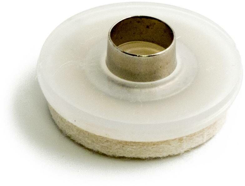 Plastisk glidekrok med filtbeläggning och rörnitar. Diameter 18 mm. Förpackning med 16 st. Filtens diameter 18 mm.