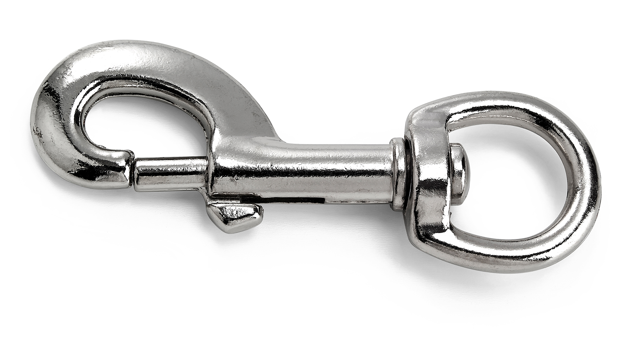 Nickelpläterad karbinhake i samak.\n\n- längd A 56 mm\n- längd B 30 mm
