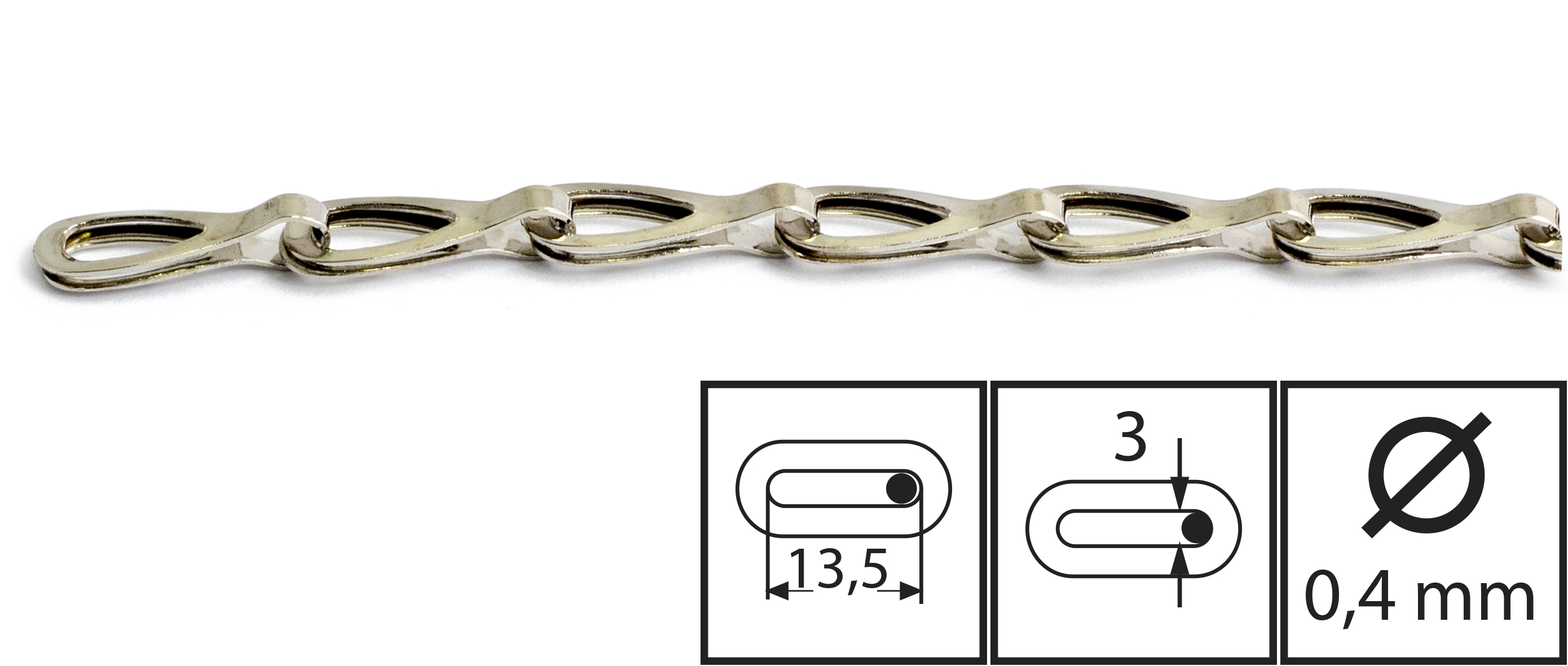 Kedja i mässing 0,4 mm. - beräknad maxvikt: 21 kg- längd: 2 m