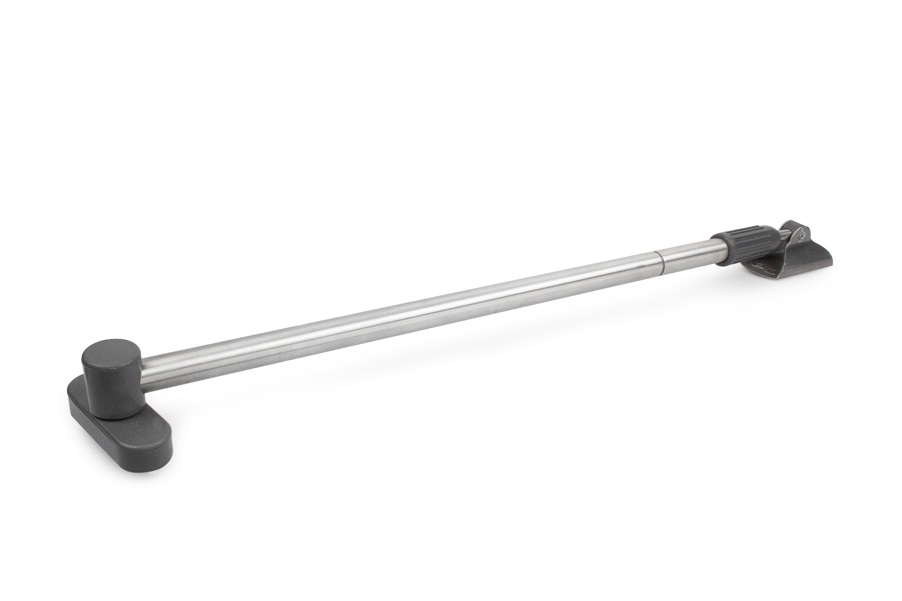 Kipplås för utåtvända dörrar. Dörrens bredd 700-910 mm. Fästen och teleskoprör i lackerad stål. Stång i rostfritt stål. Fästen och justeringshylsa i plast.