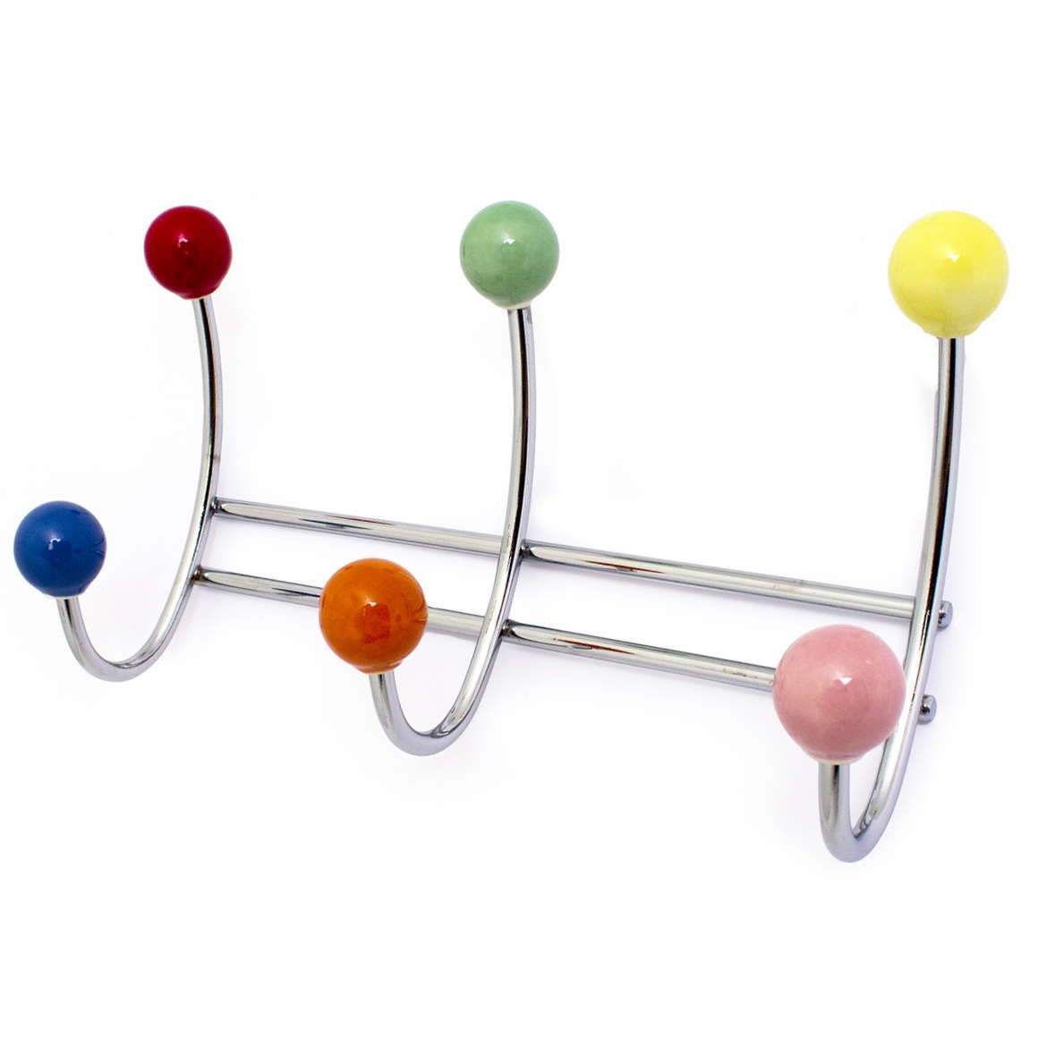 Kroklist i kromad stål med flerfärgade porslinsknoppar. Passar lika bra i barnrummet som i hallen. Kroklist med gott om plats för kläder, handskar, väskor osv. - bredd 235 mm- utskjutning 80 mm